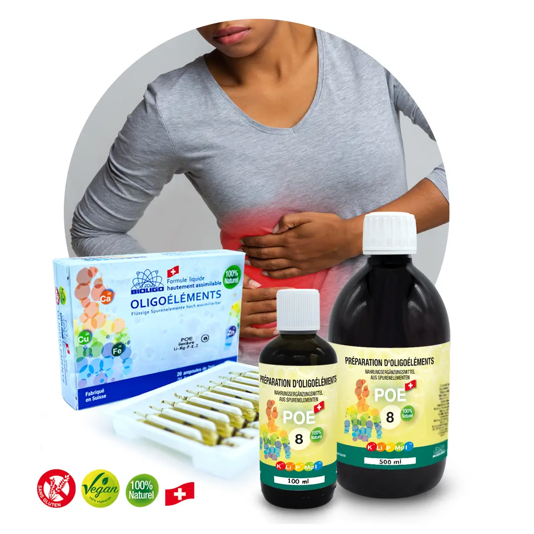 - Digestion: diarrhées, vomissements, crampes