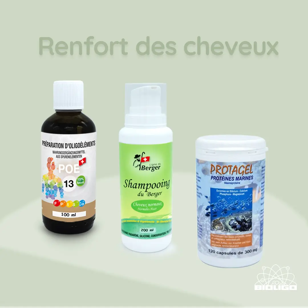 Je renforce la structure de mes cheveux avec le POE 13 et le Protagel et utilise le shampoing du Berger pour les chouchouter.